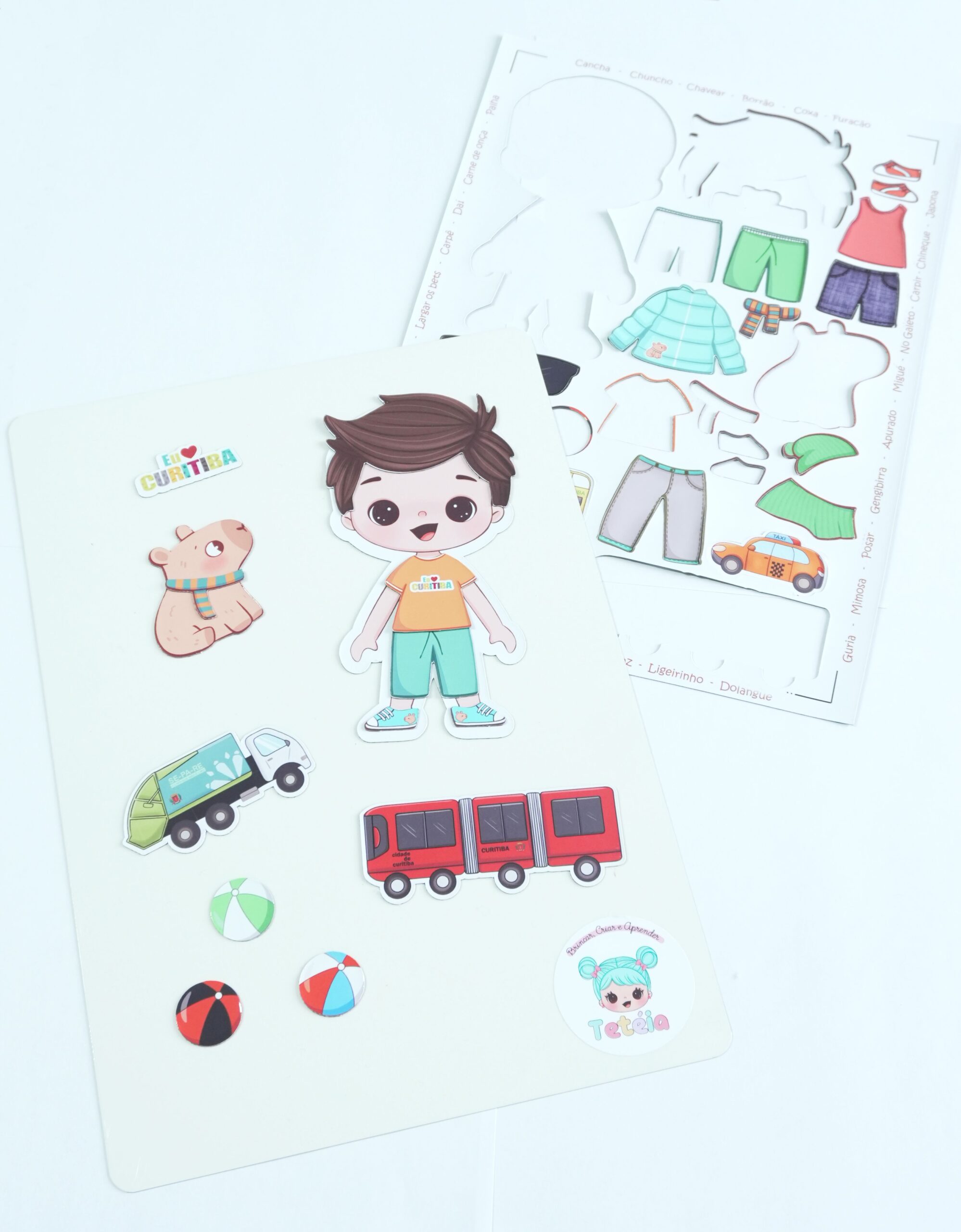 Menina ou menino imantados pra montar, vestir, brincar e criar novas composições!